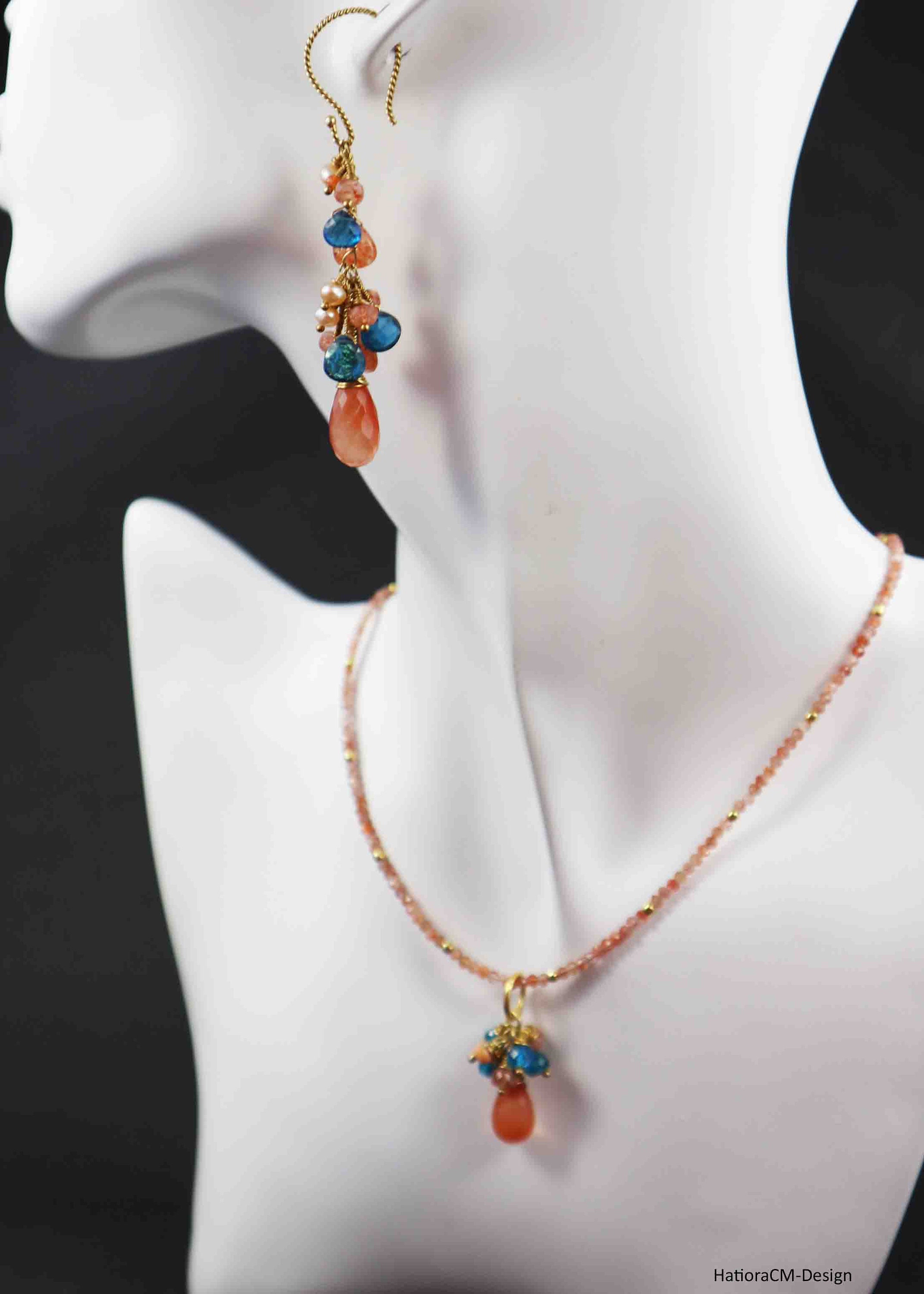 Exciting earrings inspired by a trip to the Pacific beaches with Pacific blue apatite and dazzling sunstones!